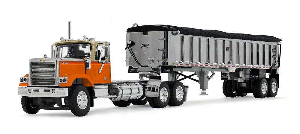 DCP/First Gear 60-1925 Orange/Tan Chevrolet Bison Day Cab with East End Dump Trailer