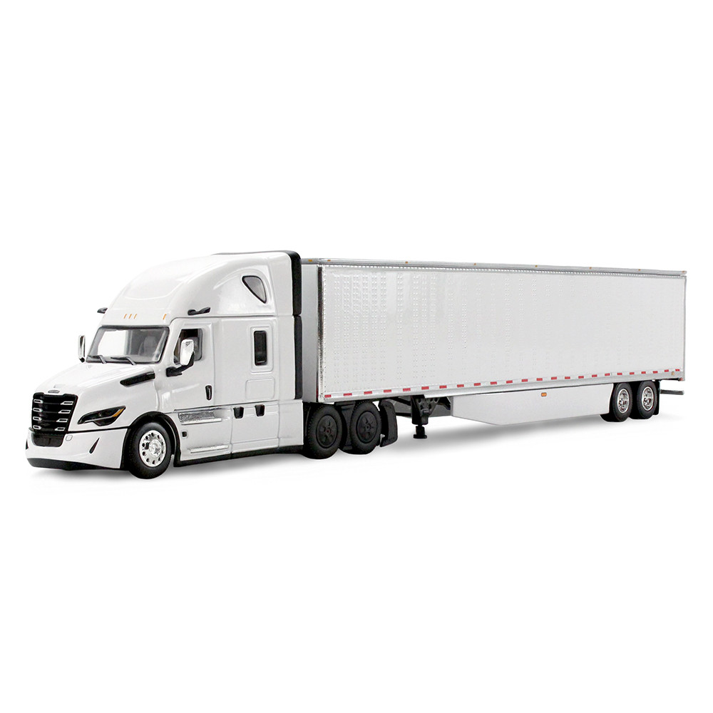 DCP/First Gear 60-2087 White Freightliner Fifth Generation Cascadia Raised Roof Sleeper & 53′ Utility Trailer with Skirts