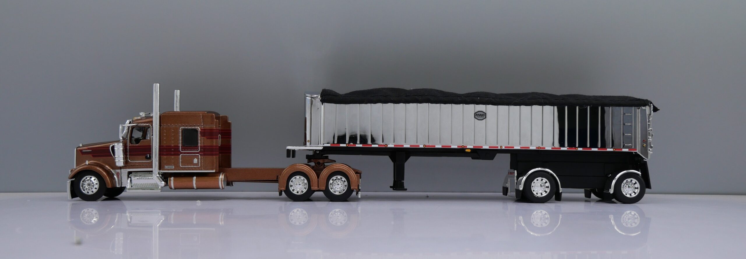 DCP/First Gear 60-2099 Bronze/Red Kenworth W900L 72in Flat Top Aerocab with CHROME/Black Frame Mac Coal Dump Trailer