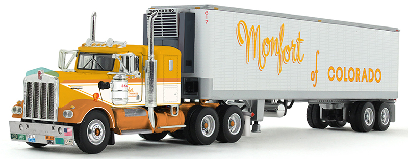 DCP/First Gear 69-1860 Fallen Flag #50 Monfort of Colorado Kenworth W900A 36in Sleeper w/40ft Vintage Refrigerated Trailer
